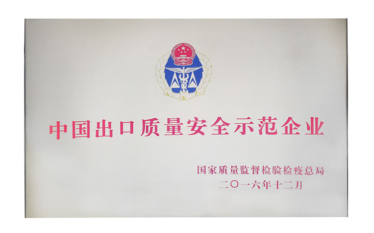 獲頒“中國出口質量安全示范企業“榮譽稱號
